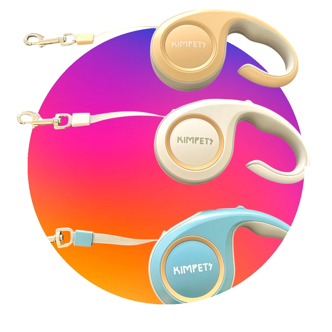 Deze stijlvolle uittrekbare hondenleiband heeft een ergonomisch handvat.